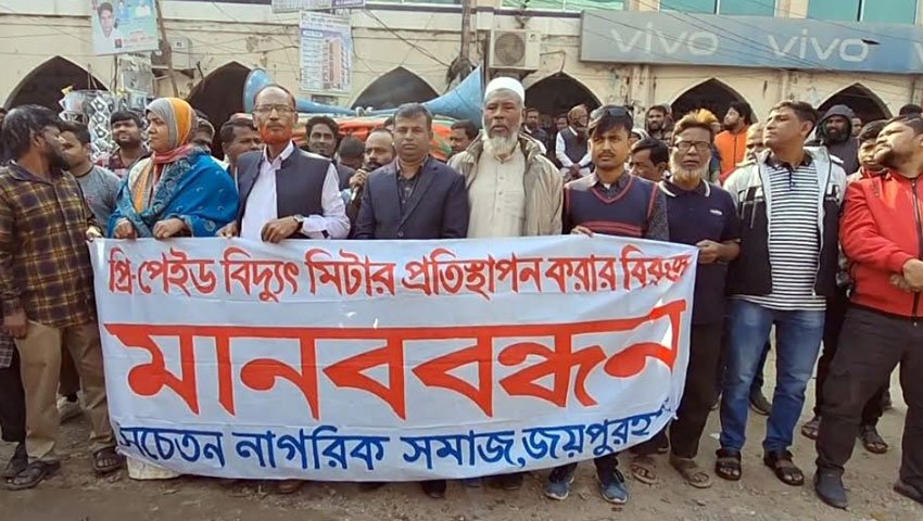জয়পুরহাট প্রিপেইড মিটার প্রতিস্থাপনের বিরুদ্ধে মানববন্ধন